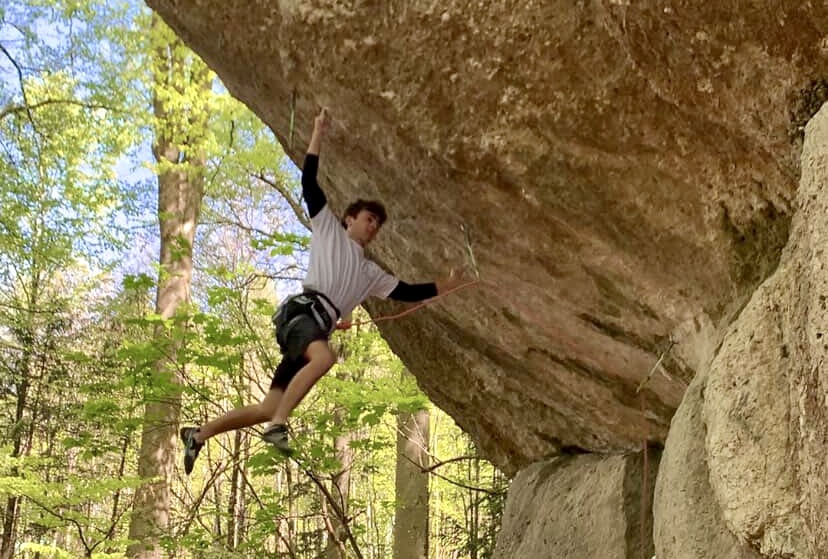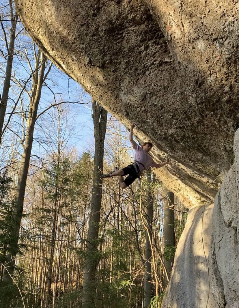 Pas de préparation spécifique démesurée, mais une intuition forte : le style lui correspond. Accompagné de son ami Justin, Mattéo pose ses valises dans le Frankenjura pour deux semaines avec un objectif clair : enchaîner la voie !