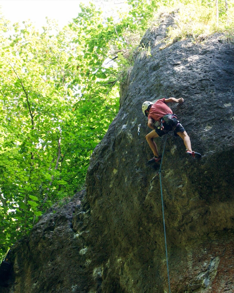 Dès son arrivée en Allemagne, Leo a jeté son dévolu sur « Wallstreet », cette ligne verticale aux réglettes microscopiques qui a marqué un tournant dans l’histoire de l’escalade. Malgré une progression rapide dans la voie, les conditions humides et chaudes rendaient les derniers mouvements presque impossibles. Après plusieurs semaines de pause et un retour dans la voie lors d’une période plus fraîche, Leo a finalement clippé le relais.