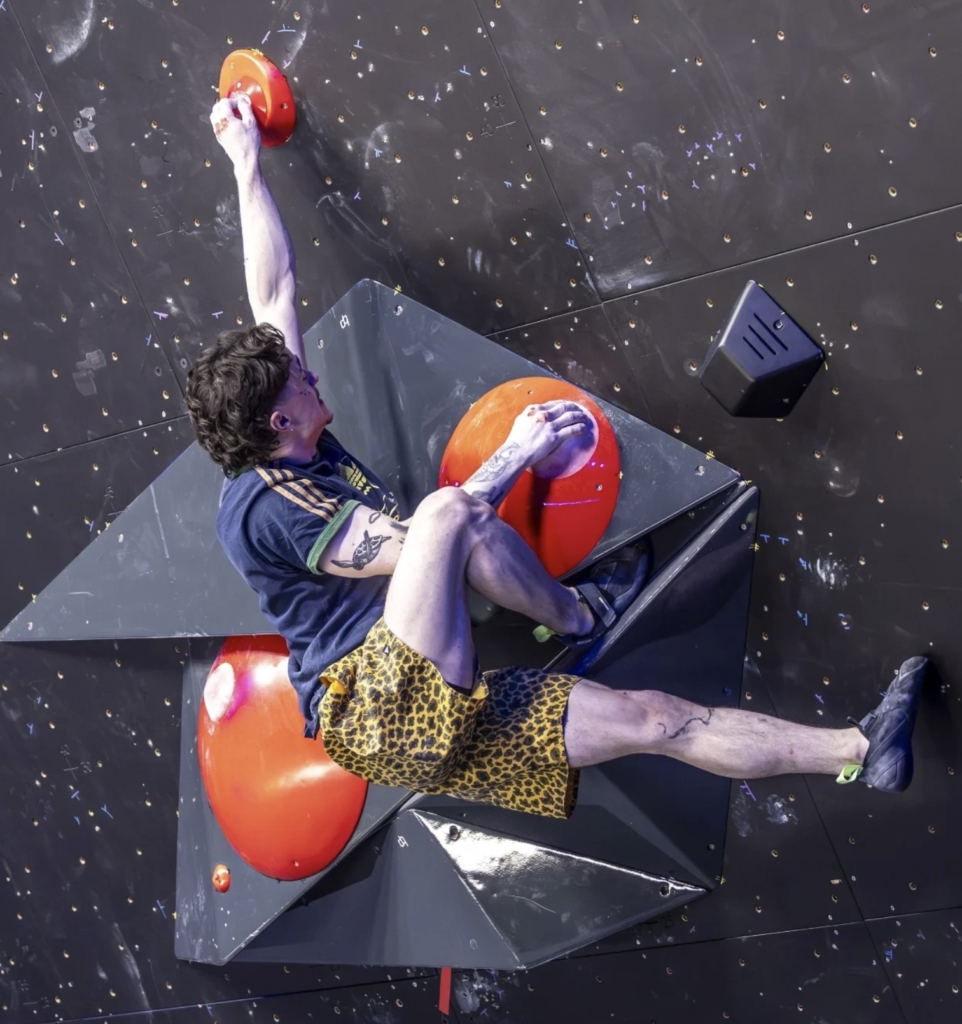 Parmi les grimpeur·euse·s présent·e·s, le Français Mejdi Schalck a particulièrement apprécié l’expérience, qu’il décrit comme très différente d’une étape de Coupe du monde classique.