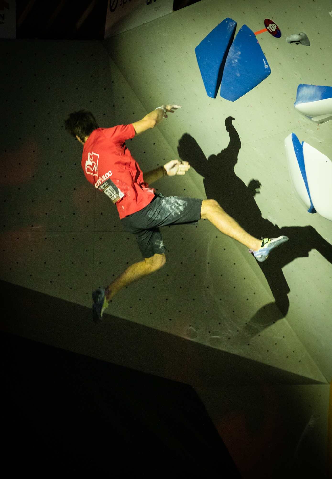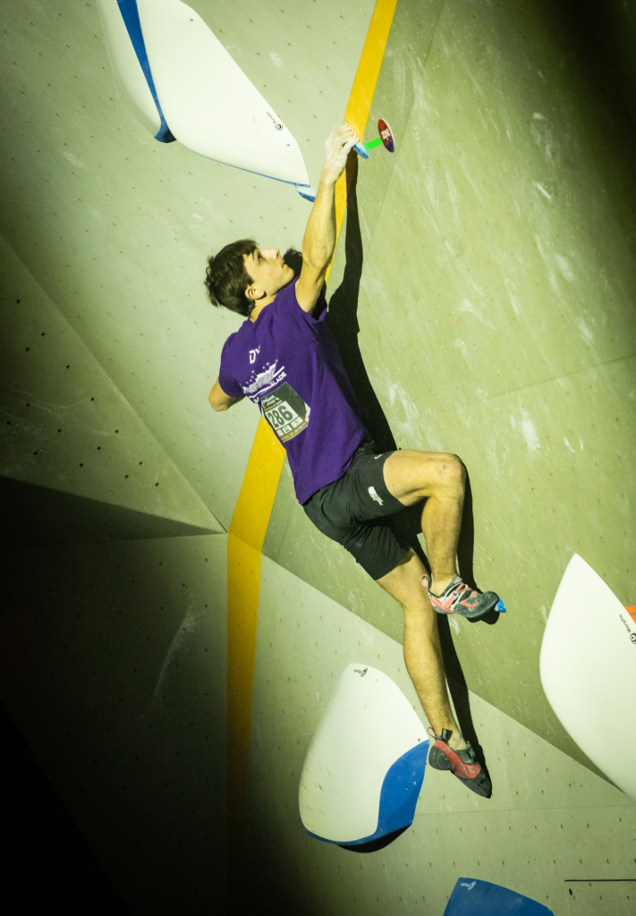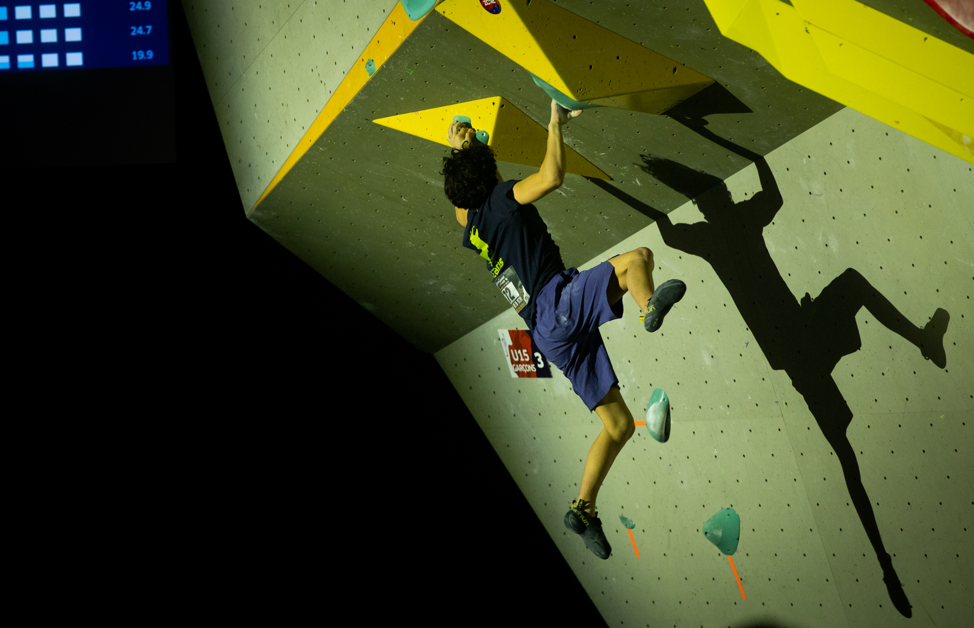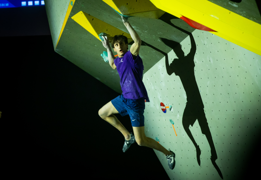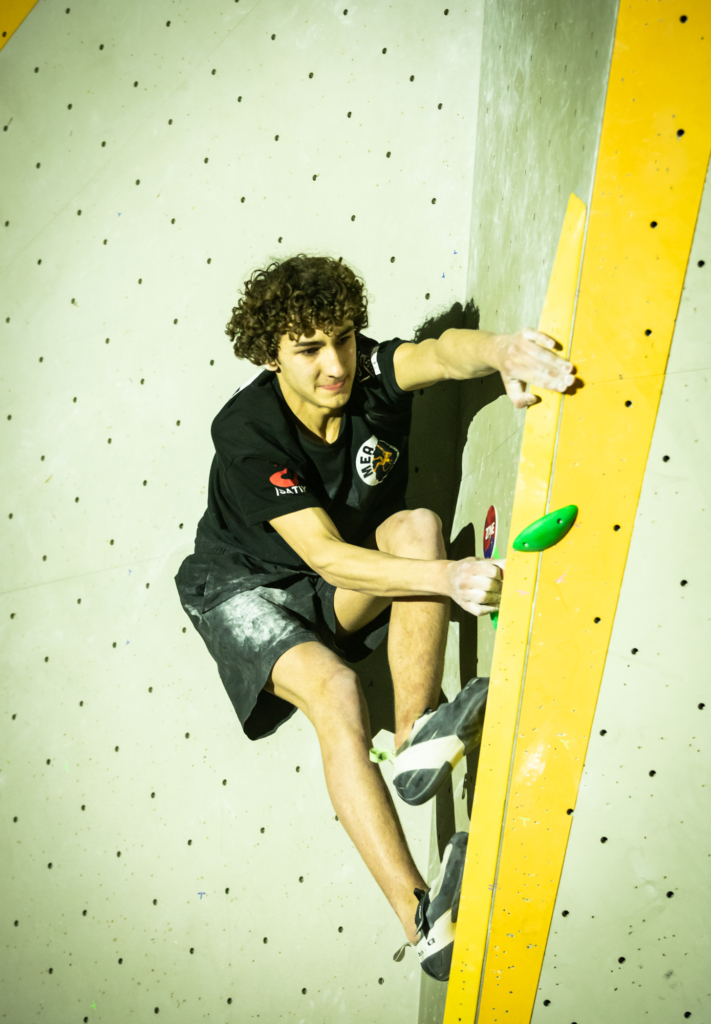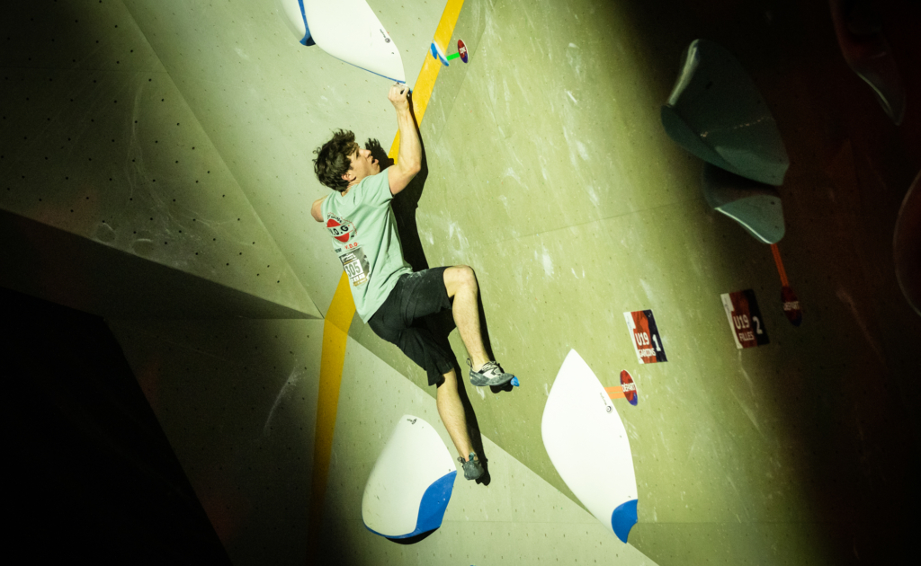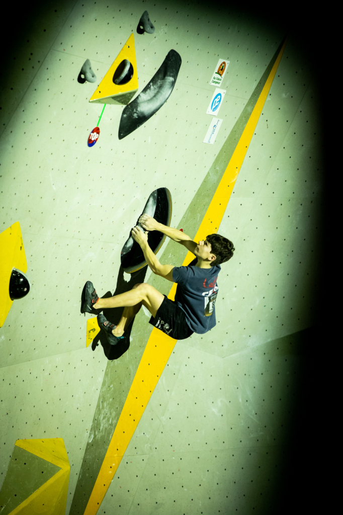 Chez les garçons, c’est encore plus serré ! Le top 3 s’est tenu en seulement quelques essais d’écart… Les meilleurs auront validé trois blocs de la finale, ainsi qu’un bloc où seule la zone aura été atteinte, soit un score maximal possible de 85 points (pour rappel : un top = 25 points, une zone = 10 points, et chaque essai supplémentaire retire 0,1 point).