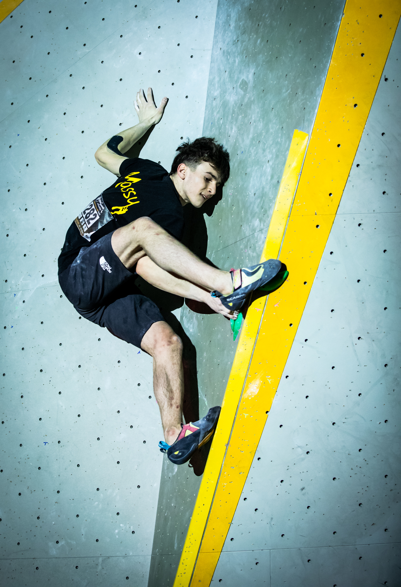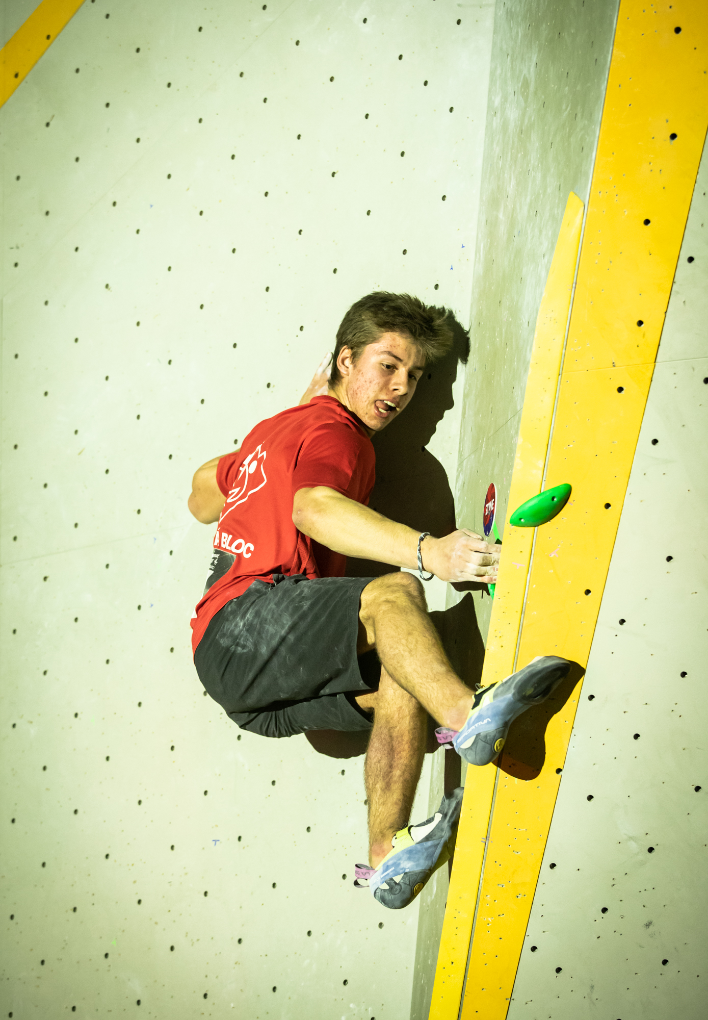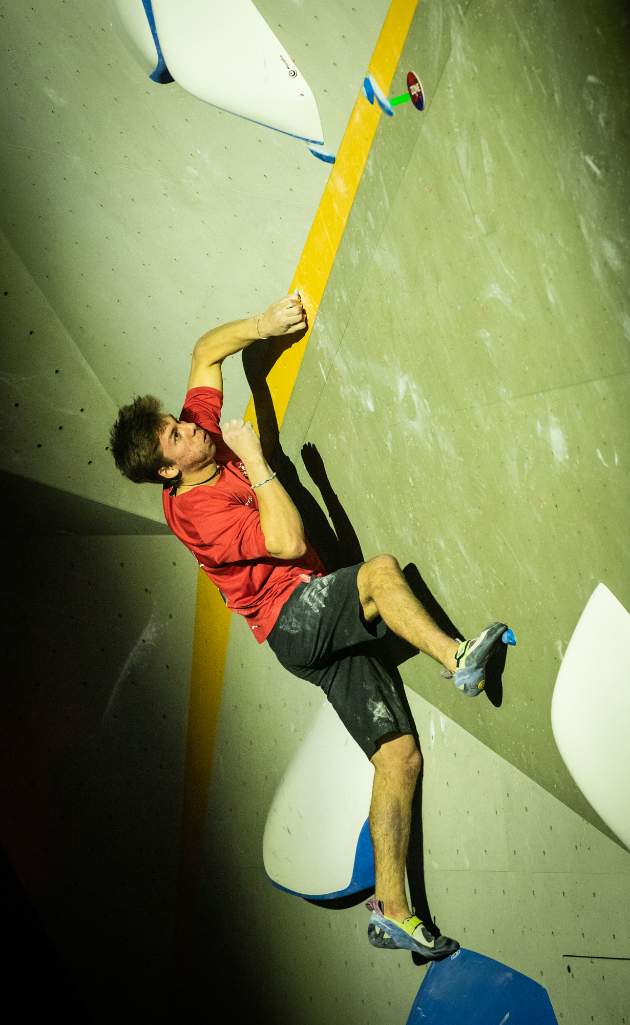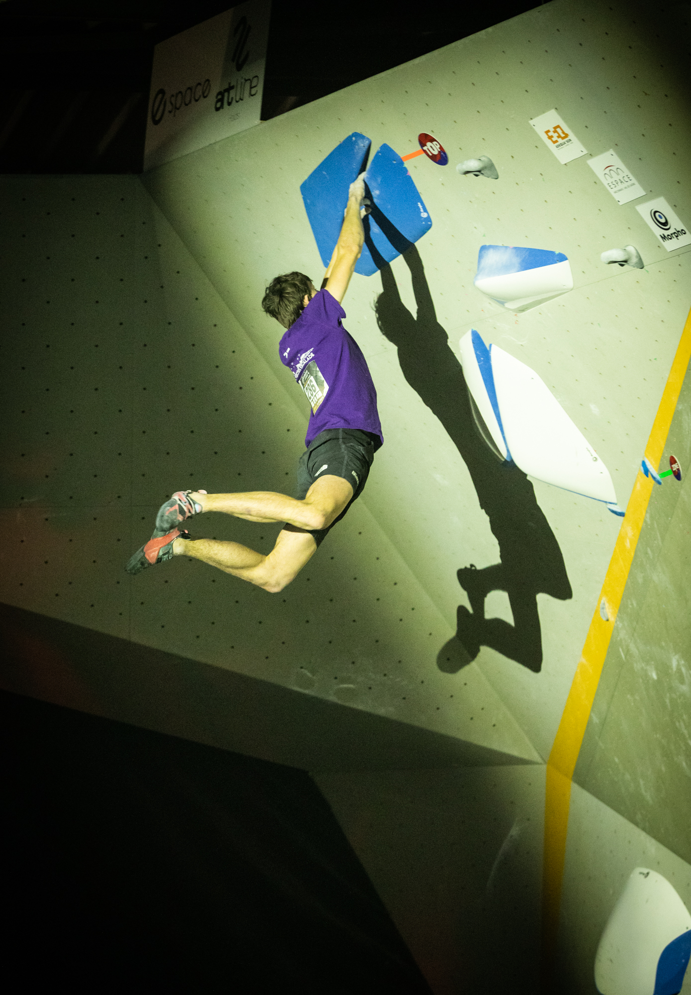 Chez les garçons, c’est encore plus serré ! Le top 3 s’est tenu en seulement quelques essais d’écart… Les meilleurs auront validé trois blocs de la finale, ainsi qu’un bloc où seule la zone aura été atteinte, soit un score maximal possible de 85 points (pour rappel : un top = 25 points, une zone = 10 points, et chaque essai supplémentaire retire 0,1 point).