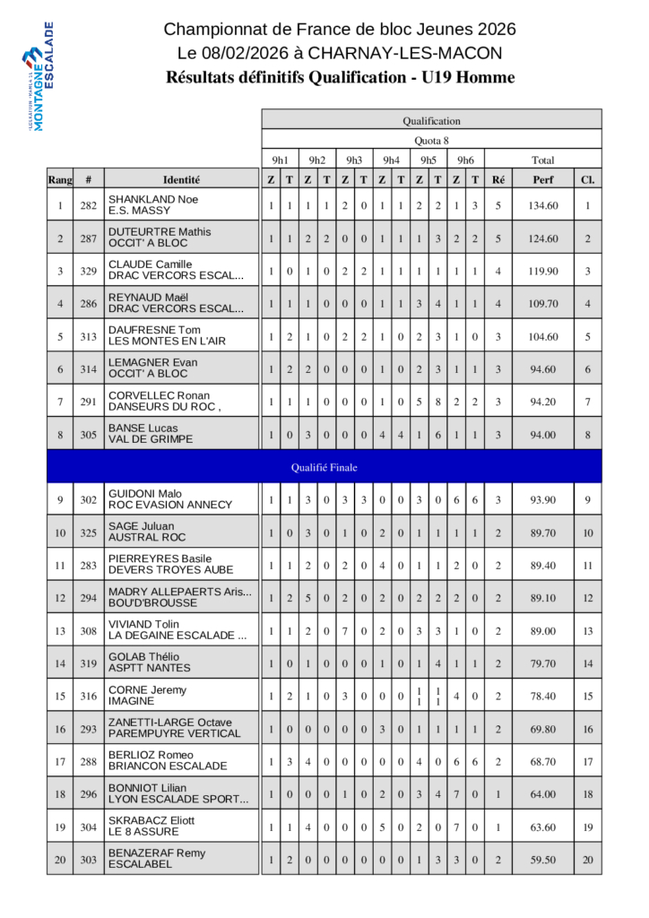 Championnat de France de bloc Jeunes 2026 – Qualification U19 HOMME