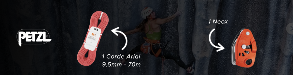 - Corde Arial: Légère et robuste, c’est une corde à simple conçue pour l’escalade et l’alpinisme. Elle bénéficie du traitement Duratec Dry lui apportant un maximum de longévité et de performance, quelles que soient les conditions. Avec un très bon rapport diamètre/durabilité, elle convient parfaitement aux grimpeurs souhaitant une corde durable pour travailler et enchaîner des voies. Grâce à son excellente prise en main et sa maniabilité, les manipulations sont facilitées.