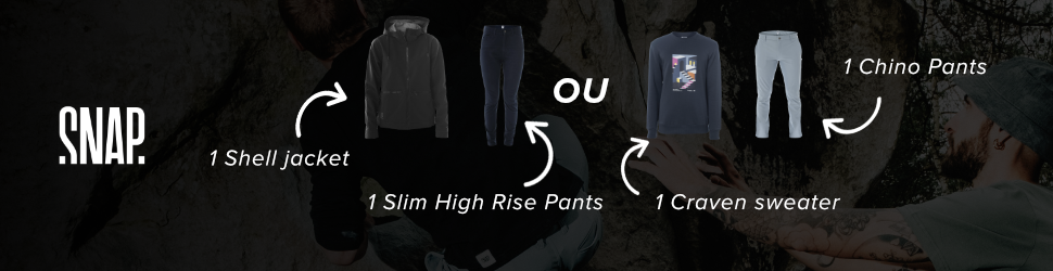 SNAP, née dans les années 90 à Chamonix, est une marque française emblématique, connue dans le monde de l’escalade pour sa vision décalée et innovante des produits d’escalade. SNAP s’est distinguée en cassant les codes d’une grimpe sérieuse grâce à une communication décalée et absurde tout en proposant les produits les plus techniques possibles. Aujourd’hui la marque répond aux besoins des grimpeurs qui prennent plaisir à grimper entre potes. L’esthétisme et la technicité sont les seules règles que Snap se fixe.