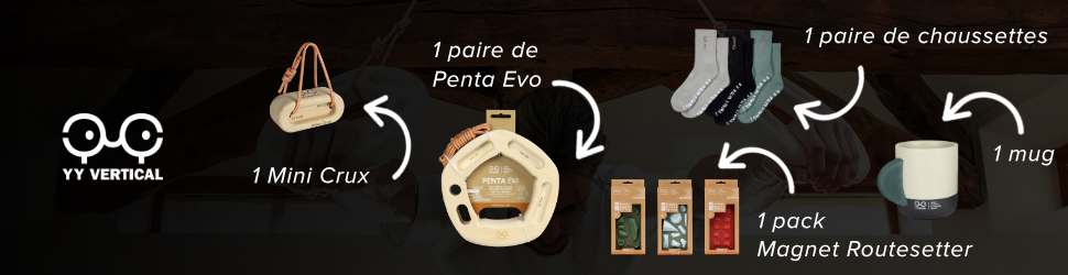 Créateur français spécialisé dans les accessoires d’entraînement et de bien-être pour grimpeurs : poutres, outils de préhension, lunettes d’assurage, soins… YY Vertical allie ergonomie et originalité pour accompagner la progression et le plaisir de grimper.