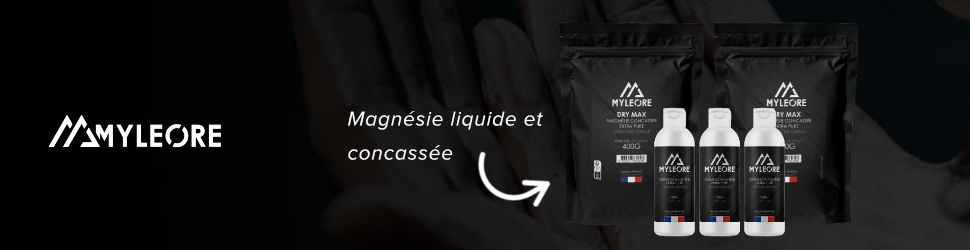 Marque française spécialisée dans la magnésie liquide et en poudre de haute qualité, fabriquée localement. Myleore mise sur la performance, la pureté des ingrédients et une production responsable pour accompagner les grimpeurs sur tous les terrains.