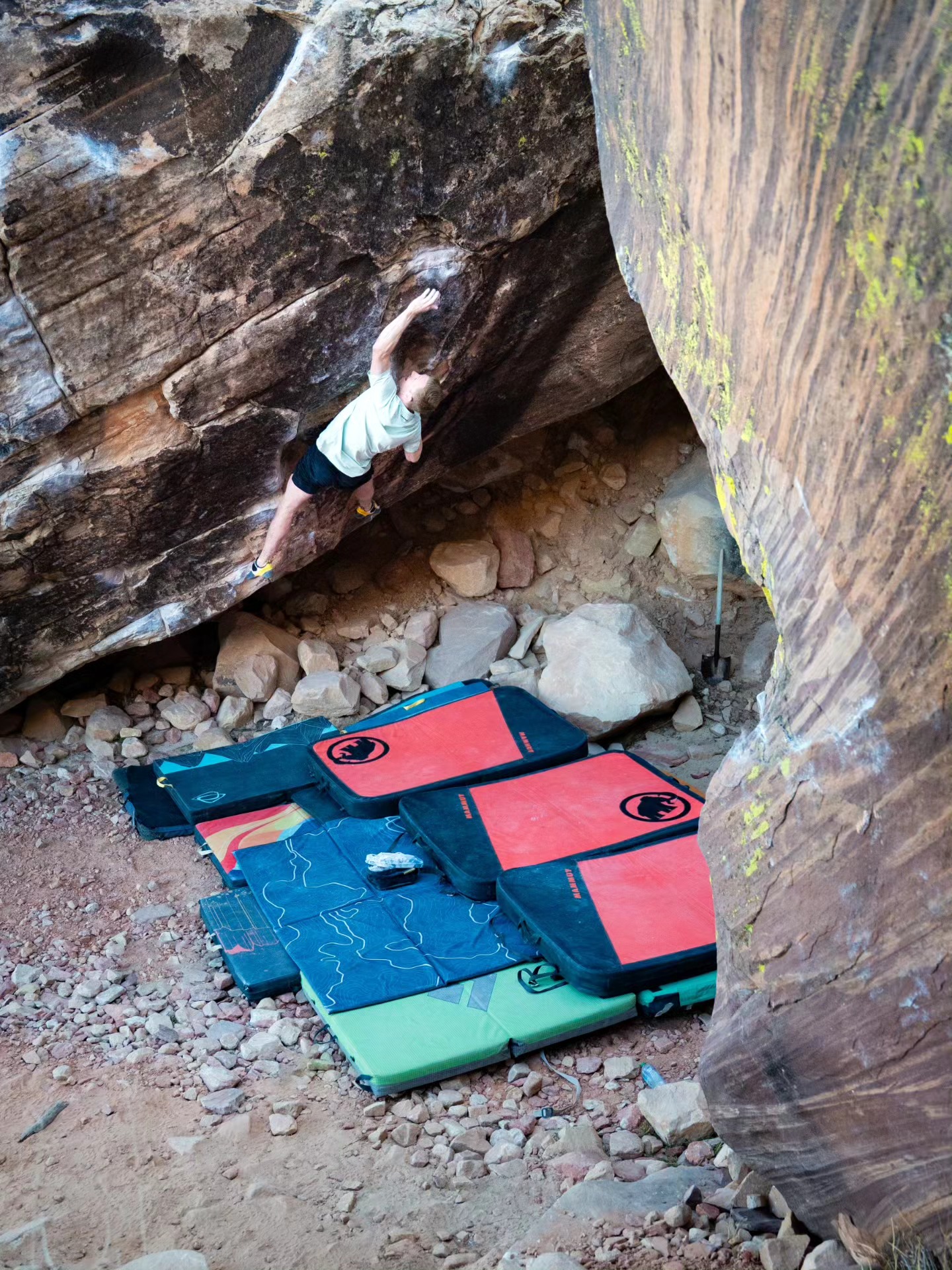 Le processus n’a pourtant rien eu d’un long fleuve tranquille : peau abîmée, coupures dans le doigt récurrentes, et surtout une prise cassée venue rebattre les cartes. « Au début, c’était facile de rester patient, j’avais prévu un mois sur place. Mais à la fin, c’est devenu de plus en plus frustrant. J’avais l’impression que le trip était un peu maudit. » Ce qui a fait la différence ? L’ambiance du groupe. « Les personnes avec qui j’étais, l’énergie, l’esprit du trip. On passait vraiment un super moment. Ça m’a aidé à rester positif et patient. »
