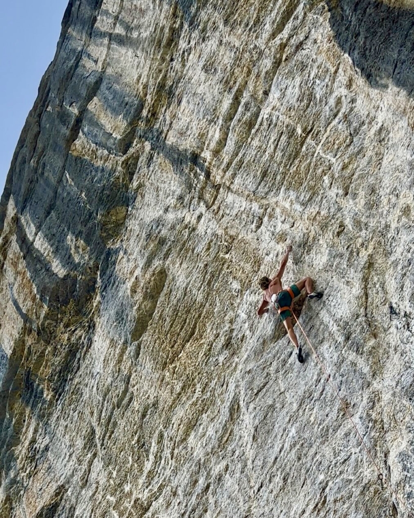 Après ses récents exploits en bloc à Fionnay — avec deux 8C en quelques jours — Jules Marchaland continue sur sa lancée… mais cette fois en falaise. En seulement deux jours passés à Rawyl, il signe deux 8b+ à vue et enchaîne « Super Finale » 9a.