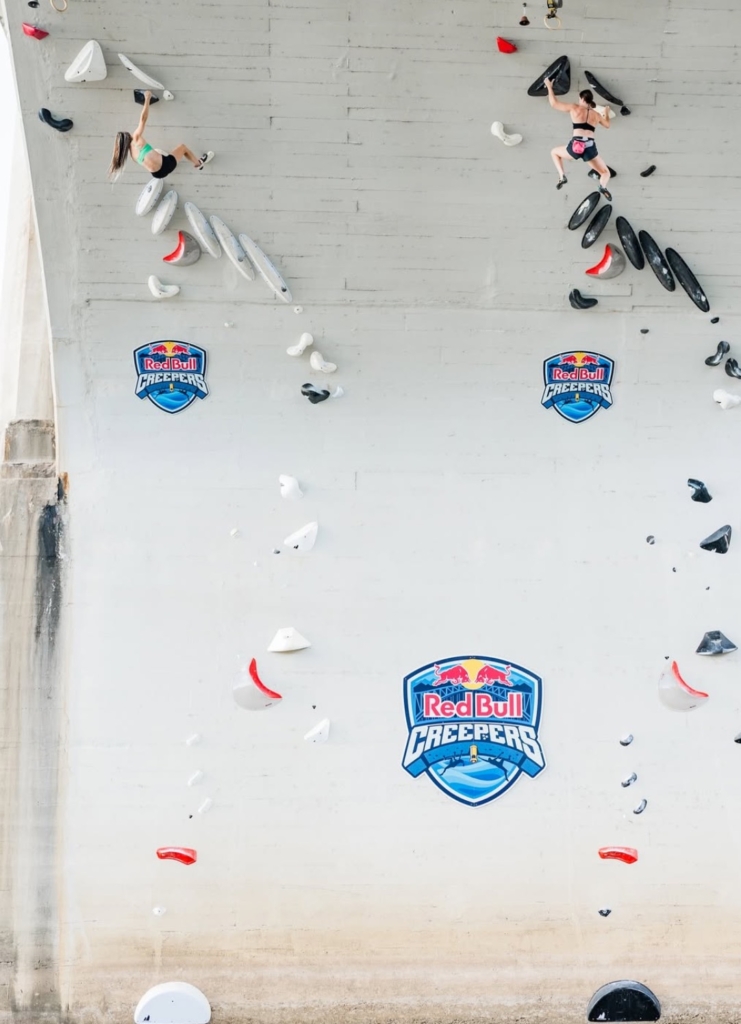 Né en Espagne en 2014, le Red Bull Creepers est rapidement devenu un événements incontournable de la marque de boissons énergisantes : un format de psicobloc urbain, où certains des meilleurs grimpeurs du monde s’affrontent en duel sur des voies identiques, tracées au-dessus de l’eau.