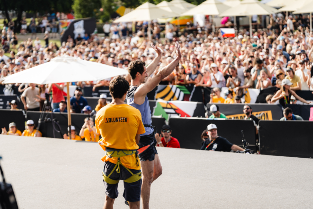 Adam Ondra, très attendu par le public, prend la 10ᵉ place : il chute en tentant d’attraper le bac final de la première voie et manque le top de la deuxième à quelques mouvements du sommet — une entrée en matière solide mais perfectible pour le Tchèque.