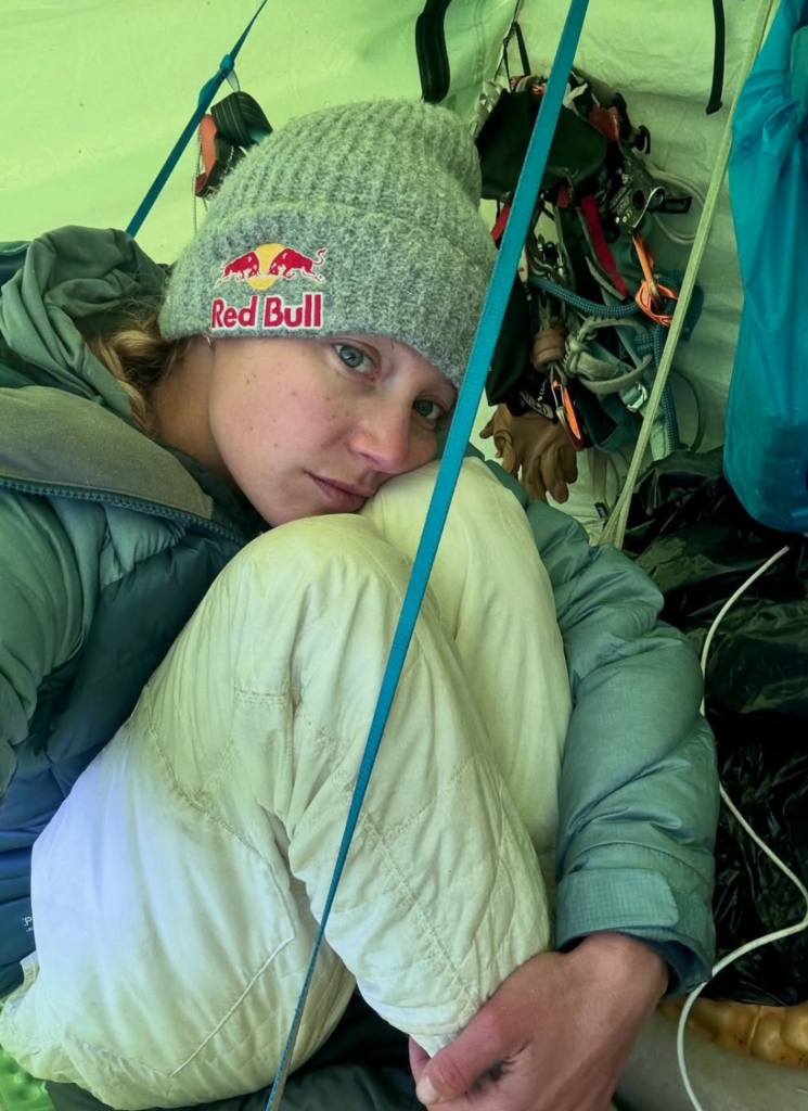 « C’est incroyable qu’on soit encore là ! », écrivait-elle après avoir reçu des messages d’encouragement d’Alex Honnold et Tommy Caldwell au plus fort de la tempête.