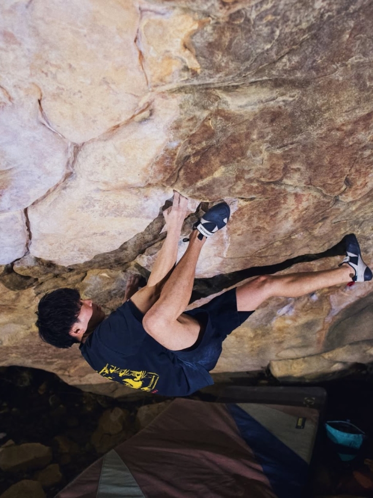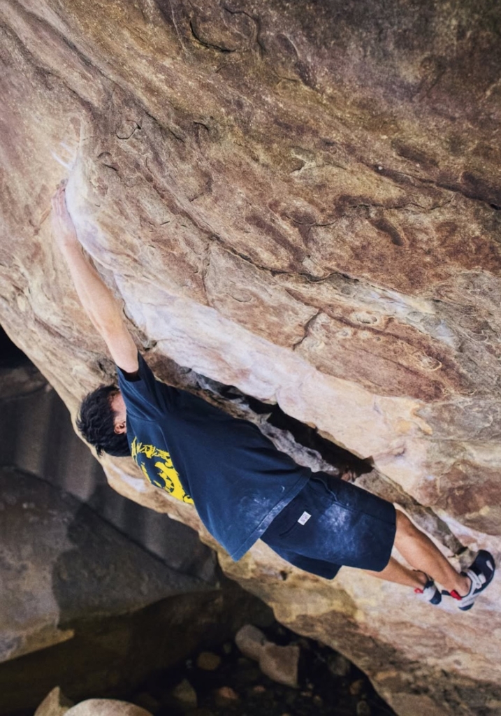 « Return of the Sleepwalker » est la version assise de « Sleepwalker », imaginé par Daniel Woods et libéré en 2021 après une bataille aussi intense que mystique. Isolé dans le désert pendant les derniers jours de son siege, Woods avait alors donné naissance au troisième 9A bloc de l’Histoire. Il aura fallu trois longues années pour voir la première répétition, signée William Bosi en 2024, suivie par Noah Wheeler puis Simon Lorenzi en 2025.