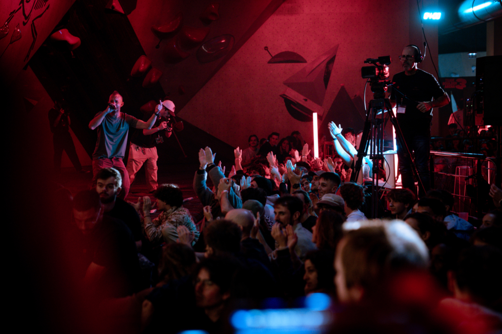 Au TBA, la proximité entre les grimpeurs et le public crée une tension unique. Les spectateurs sont au plus près des blocs, la musique et la lumière rythment chaque tentative : une atmosphère immersive inspirée du concept des soirées « Boiler Room », où le public et les artistes ne font plus qu’un. Le résultat ? Un show intense et vibrant, où chaque mouvement devient un moment unique.