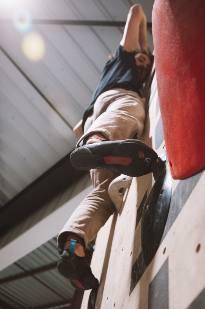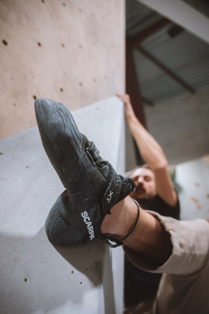 Concrètement, la structure en hexagones crantés du talon vient accrocher finement chaque petit détail qui ressort du rocher tel un pneu de voiture. Si l’on est bien à l’écoute de ses sensations, on peut constater que le talon vient accrocher et se verrouiller. En salle, l’efficacité sera moins notable sur des volumes arrondis et des prises lisses mais le talon reste suffisamment souple pour conserver de bonnes sensations.