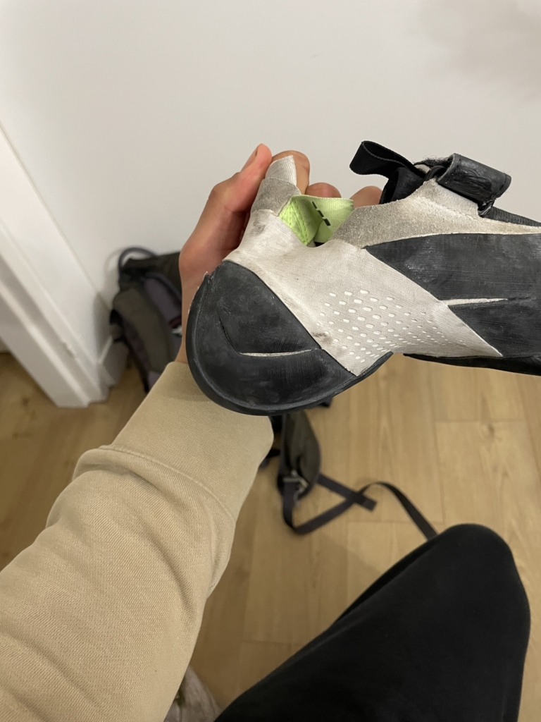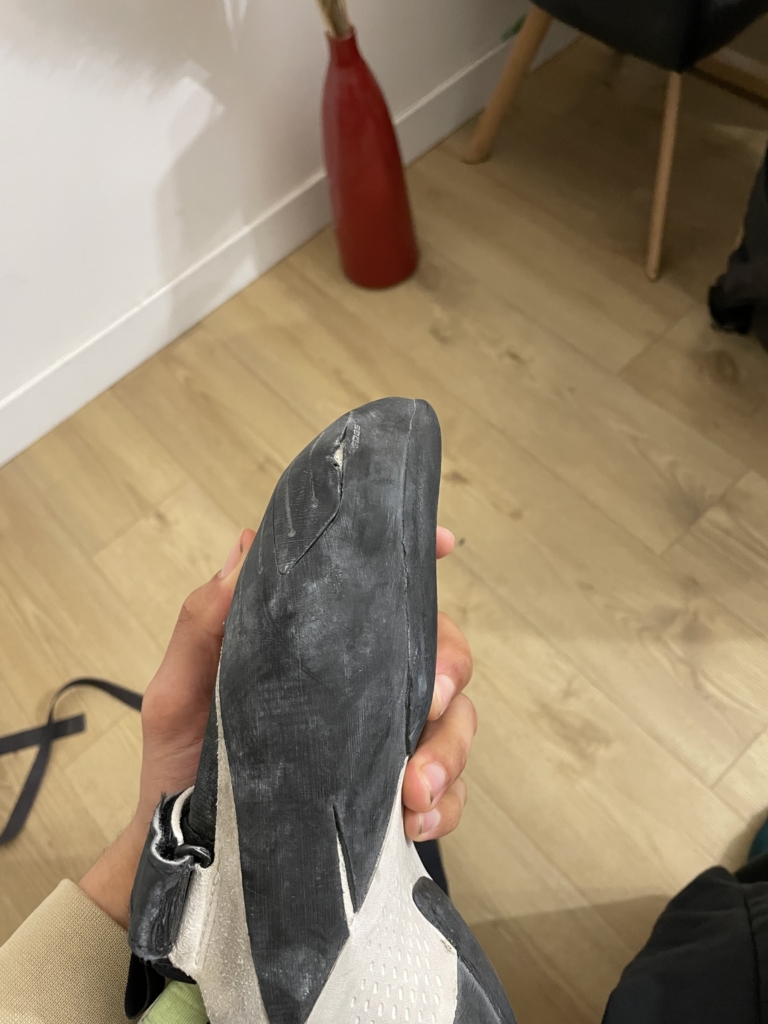 En bloc et en voie SAE j’ai été moins fan du fais de la pointe qui s’arrête pile au niveau du gros doigt de pied et non pas après comme la plupart des chaussons (très spécial au début). De ce fait, il faut être vraiment précis sur la pause de pied rendant cette dernière étrange. Bien entendu, un amateur de dalle n’aura aucun mal à bien les utiliser au bout d’un temps d’adaptation.