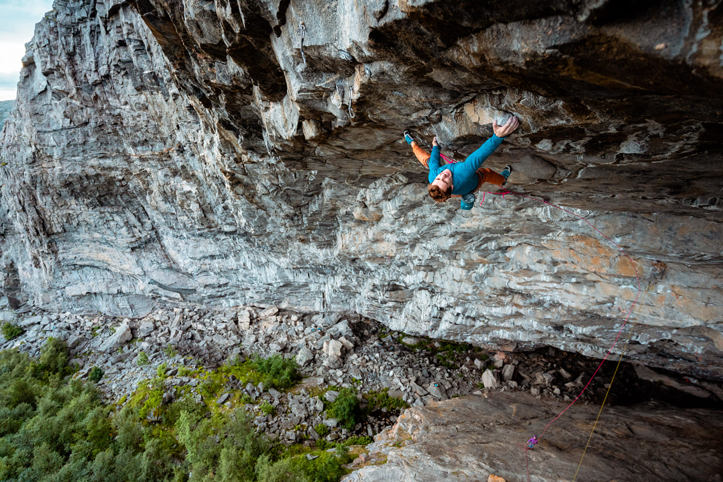 Impossible d’aborder la question des projets les plus fous sans consacrer un chapitre à Seb Bouin. Le Français est sans doute aujourd’hui le grimpeur qui explore le plus systématiquement les confins du possible. À Russan, avec “Insouciance”, il évoque lui‑même un hypothétique 9c+. À Sanetsch, en Suisse, il décrit une ligne longue, sans repos, d’une intensité rare. À Flatanger, enfin, son projet “Move Integral” (une combinaison de “Move” et “Thor’s Hammer”) pourrait bien devenir l’une des voies les plus dures jamais imaginées.