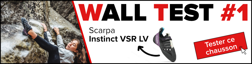 Pour ce tout premier Wall Test, nous avons choisi le Scarpa Instinct VSR LV, un chausson emblématique de la gamme performance chez Scarpa.